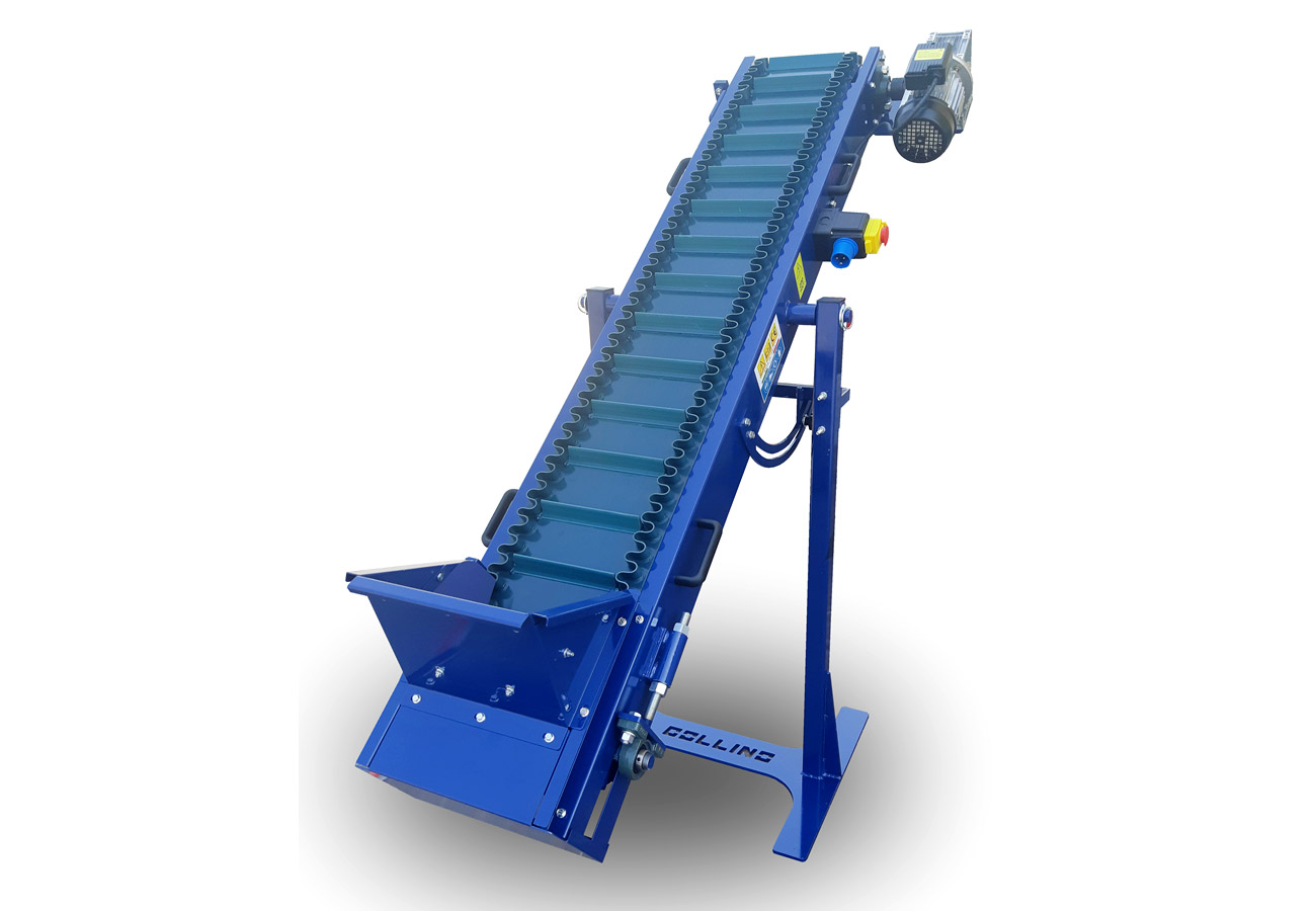 Teleskopické dopravní pásy, které lze uzavírat, ocení zejména ti, kteří mají omezený prostor. Standardní verze mají délku 4 nebo 5 metrů, zatímco šířka pásu z PVC nebo černé gumy může být 250 nebo 400 mm. Jsou hydraulicky nebo elektricky poháněny vývodovým hřídelem traktoru. Nakládací násypka je odnímatelná, dvě nafukovací přední kola spolu se dvěma otočnými zadními umožňují snadnou manipulaci.